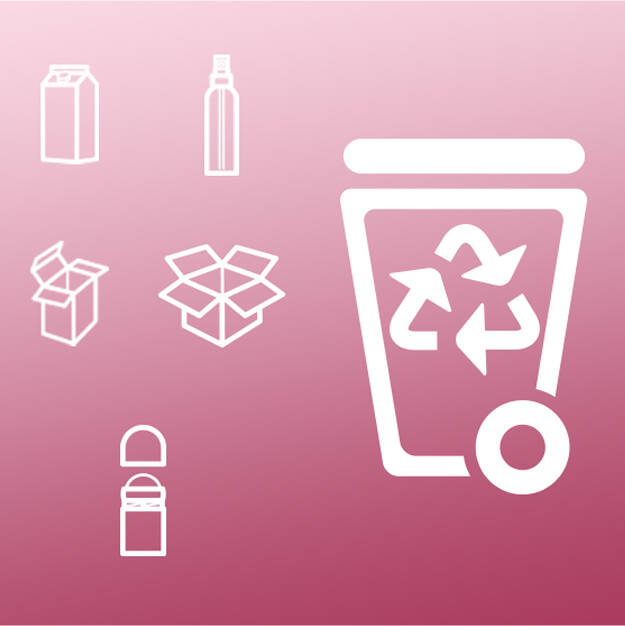 Some of our products are housed in small makeup packaging that can’t be disposed of. These products belong in a household bin.